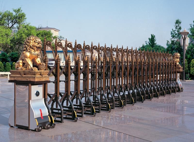 電動(dòng)伸縮門的結(jié)構(gòu)特點(diǎn)采用標(biāo)準(zhǔn)不銹鋼材料,門體采用特殊工藝管材折彎焊接而成。門體堅(jiān)固耐用。門體由大小連桿連接,形成伸縮門。大連連桿連桿式為古錢幣梅花型,小連桿連桿式為菱形道門,美觀耐用。不銹鋼伸縮門活動(dòng)件的特點(diǎn):伸縮門的每個(gè)活動(dòng)件由不銹鋼管、軸、軸瓦、不銹鋼螺母、尼龍墊組裝而成。在裝配過程中,每個(gè)環(huán)節(jié)都充滿高檔潤(rùn)滑油,自由膨脹,無噪音。鋁合金伸縮門的主體結(jié)構(gòu)與不銹鋼伸縮門相似。采用平行四邊形運(yùn)動(dòng)原理,采用標(biāo)準(zhǔn)鋁合金型材與模具直接壓制成型,再由鍍鋅管與十字連桿連接。